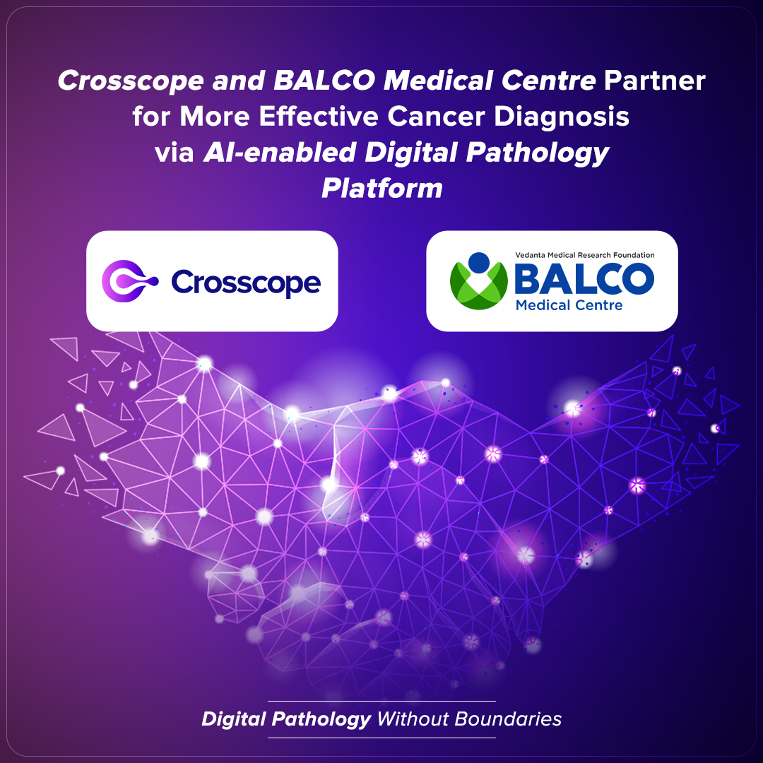 Crosscope Inc, a Silicon Valley-based leader of AI-enabled Digital Pathology Software, and BALCO Medical Centre, flagship unit of Vedanta Medical Research Foundation (VMRF), are joining hands for the digital transformation of their pathology department. This collaboration will focus on using an AI-enabled Digital Pathology Platform from Crosscope, thereby, transforming analog histopathology workflow to AI-enabled digital workflow for the hospital.